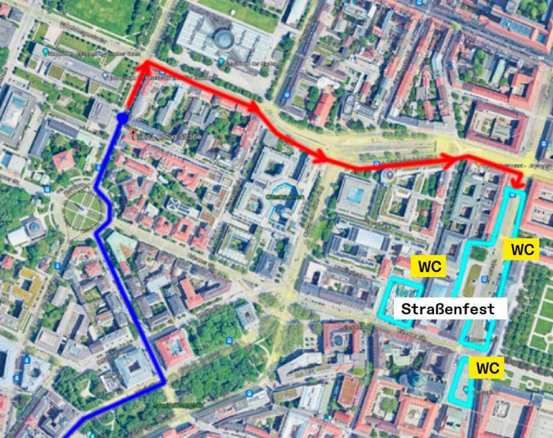 It’s possible that access to the street festival will be temporarily blocked due to too many people. We will be told about this before we reach Gabelsbergerstraße. In this case, we’ll just hang out a bit in the parks around there, until access is restored.